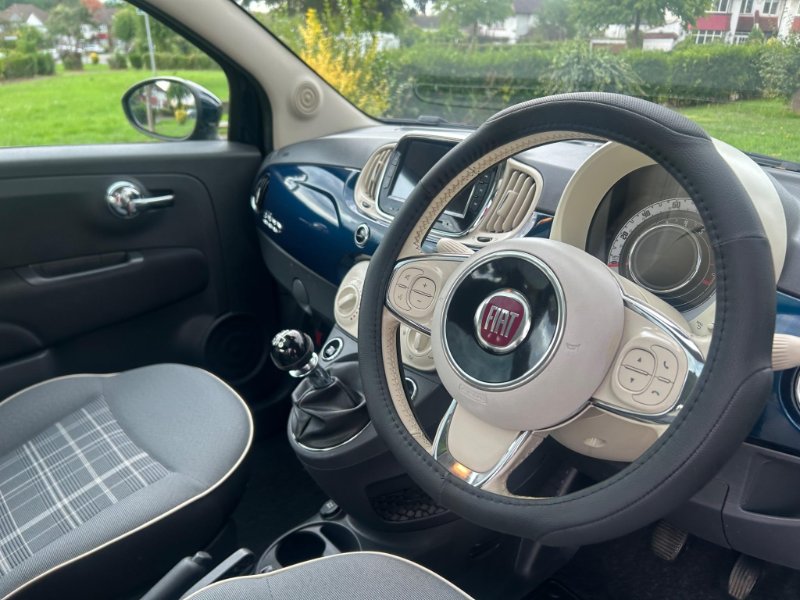 This 2017 Fiat 500 Lounge boasts an exceptionally low mileage of just 44,000 miles, complemented by a full service history and post production upgrades in the form of an upgraded infotainment system containing wireless Apple CarPlay & Android Auto. This Euro 6 compliant 1.2L petrol model comes with an MOT valid until January 2026, offering peace of mind. Inside, you'll find a 7in HD touchscreen radio with 3D navigation, Bluetooth, USB, Aux in, and DAB, alongside air conditioning and a fixed glass roof with a sunblind. For convenience, it also features rear parking sensors and a 5in touchscreen radio with AUX, USB, DAB, and Bluetooth.